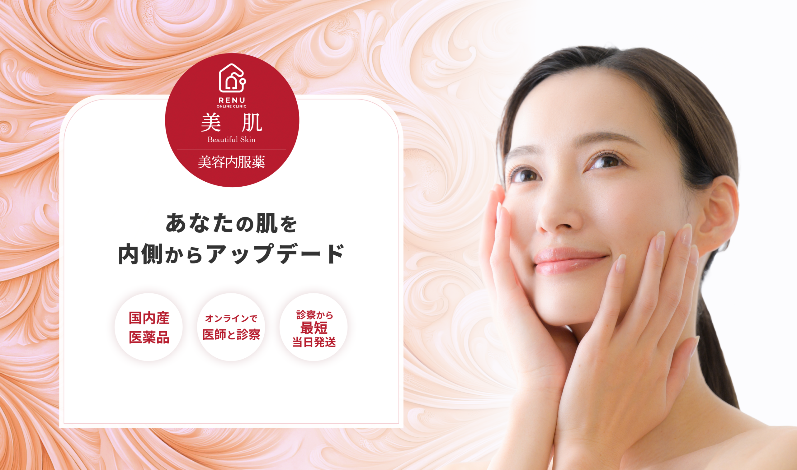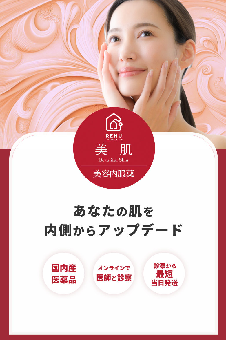 美肌用内服薬は、医師が選んだ成分で、肌の健康をサポートし、シミ・そばかす・くすみ・ニキビなどの肌トラブルにアプローチします。